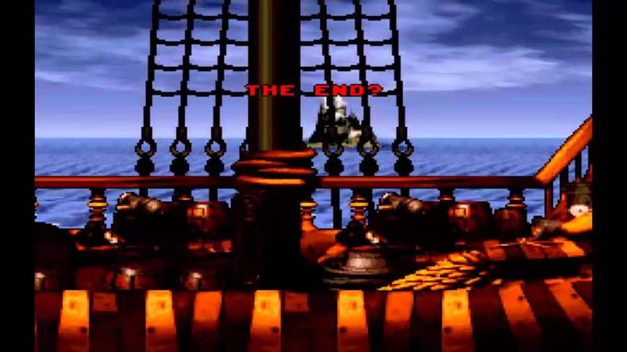 แต่ก่อนที่จะจบเครดิต ตัวเกมก็มีการขึ้นข้อความทิ้งท้ายว่า “The End? ” ซึ่งแปลความหมายว่าตัวเกมอาจยังไม่ถึงจบอย่างที่เครดิตกล่าวโชว์ไว้ตั้งแต่แรก และสุดท้ายแล้ว ก็ปรากฏว่าเกมเมอร์ต้องปราบบอส King K. Rool อีกรอบด้วยความสามารถที่แข็งแกร่งกว่าการปราบบอสรอบแรกอย่างได้เห็นชัด