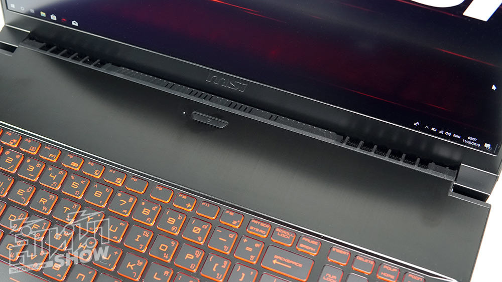 มาดูดีไซน์ของตัวเครื่องทั้งหมดกันก่อน ด้วยความบางและเบา ทำให้มันดูเรียบๆ แต่ดูดี ตัว Top บนและคีย์บอร์ดเป็นอลูมิเนียมสีดำขัดเงาที่เสริมให้ดูพรีเมียมมากขึ้น แล้วตรงฝาหลังของเครื่องจะมีตราโลโก้มังกร Dragon Army ของ MSI และนอกจากความบางของตัวเครื่องแล้ว ตัวขอบข้างของหน้าจอก็ยังเว้นไว้บางเป็นพิเศษ ทำให้พื้นที่จอกับตัวเครื่องสัดส่วนมากถึง 88% ทำให้ตัวเครื่องที่จอใหญ่ 17.3 นิ้ว เล็กสูสีกับโน๊ตบุ้ครุ่นอื่นในตลาดที่เป็นจอ 15.6 นิ้ว ได้เลย