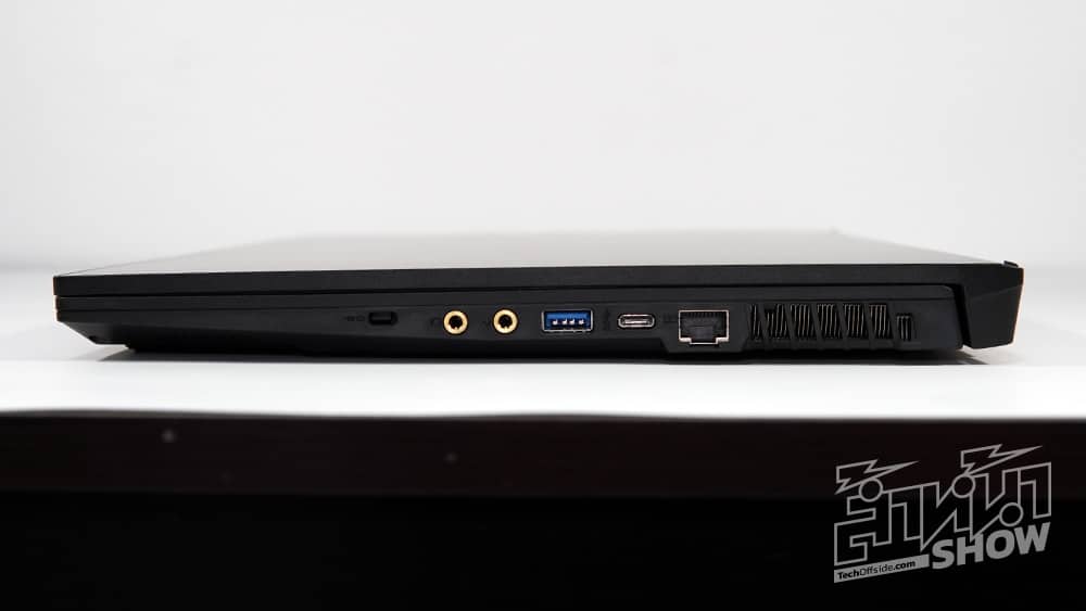 พอร์ตเชื่อมต่อ จัดมาให้แบบครบถ้วน มี USB 3.2 Type-A Gen 1 มาให้ถึง 3 ช่อง และยังมี RJ45, HDMI, USB 3.2 Type-C Gen 1, และ Audio 3.5mm Mic + Headphone แบบแยกหัว ช่องเสียบอแดปเตอร์สำหรับชาร์จไฟขนาด 180 Watt ส่วนระบบเชื่อมต่อไร้สาย เป็น Wi-Fi มาตรฐาน 802.11 ac และ Bluetooth 5.0
