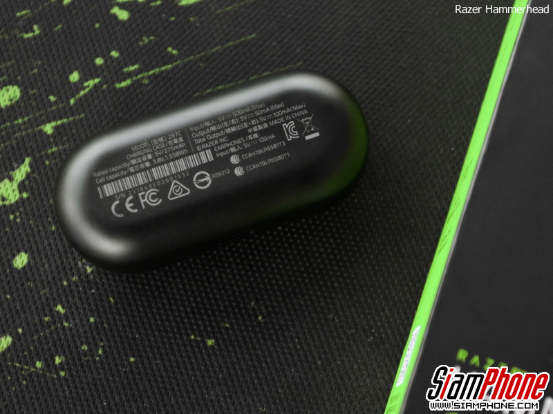ด้านล่างของกล่องเก็บหูฟังเป็นข้อมูลผลิตภัณฑ์ทั้งหมด