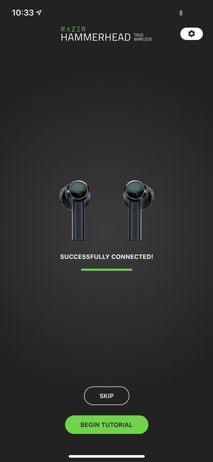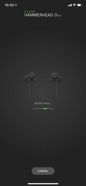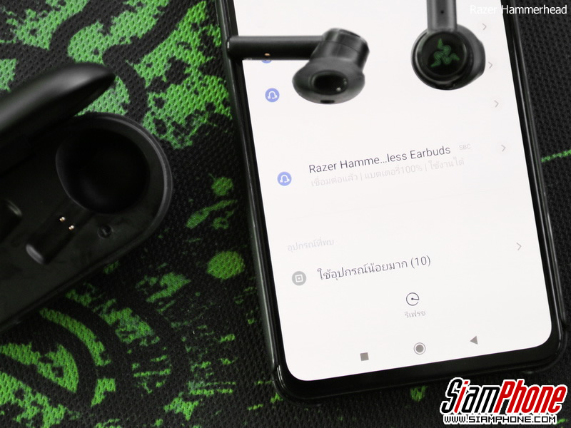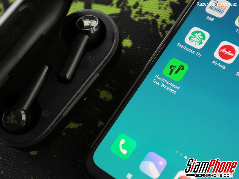 จับคู่ผ่านแอปพลิเคชั่น Razer Hammerhead True Wireless ดาวน์โหลดแอปฯ ได้ทาง App Store และ Play Store เมื่อเปิดแอปฯ มา แอปจะขอสิทธิ์ในการเข้าถึง Bluetooth และค้นหาอุปกรณ์พร้อมเชื่อมต่อให้อัตโนมัติ เมื่อเชื่อมต่อเสร็จก็จะแนะนำการสั่งงานต่างๆ หลังจากนั้นจะพาเราเข้าสู่หน้าหลักของแอปฯ ซึ่งจะแสดงผลแบตเตอรี่ และการปรับค่า Equalizer นอกจากนั้นยังสามารถอัพเดทเฟิร์มแวร์และดูข้อมูลอื่นๆ ได้เพิ่มเติมอีกด้วย